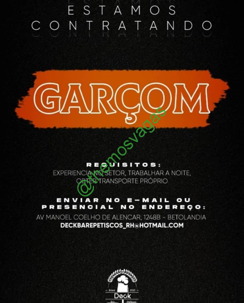 – Interessados(as) e que atendam ao perfil solicitado acima, devem enviar o currículo  para o e-mail deckbarepetiscos_rh@hotmail.com, contendo no titulo/assunto “Garçom – FOR”.