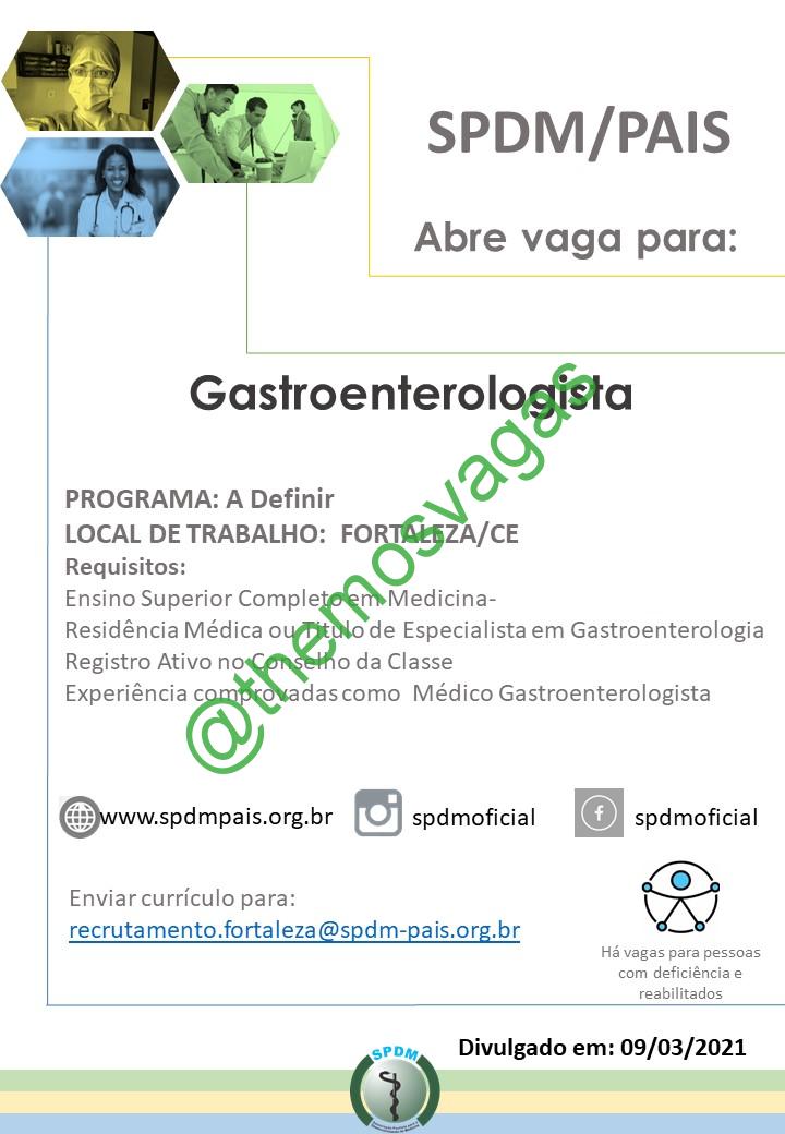 – Interessados(as) e que atendam ao perfil solicitado acima, devem enviar o currículo até 09/03/2021 para o e-mail recrutamento.fortaleza@spdm-pais.org.brcontendo no título/assunto “Gastroenterologista FOR”