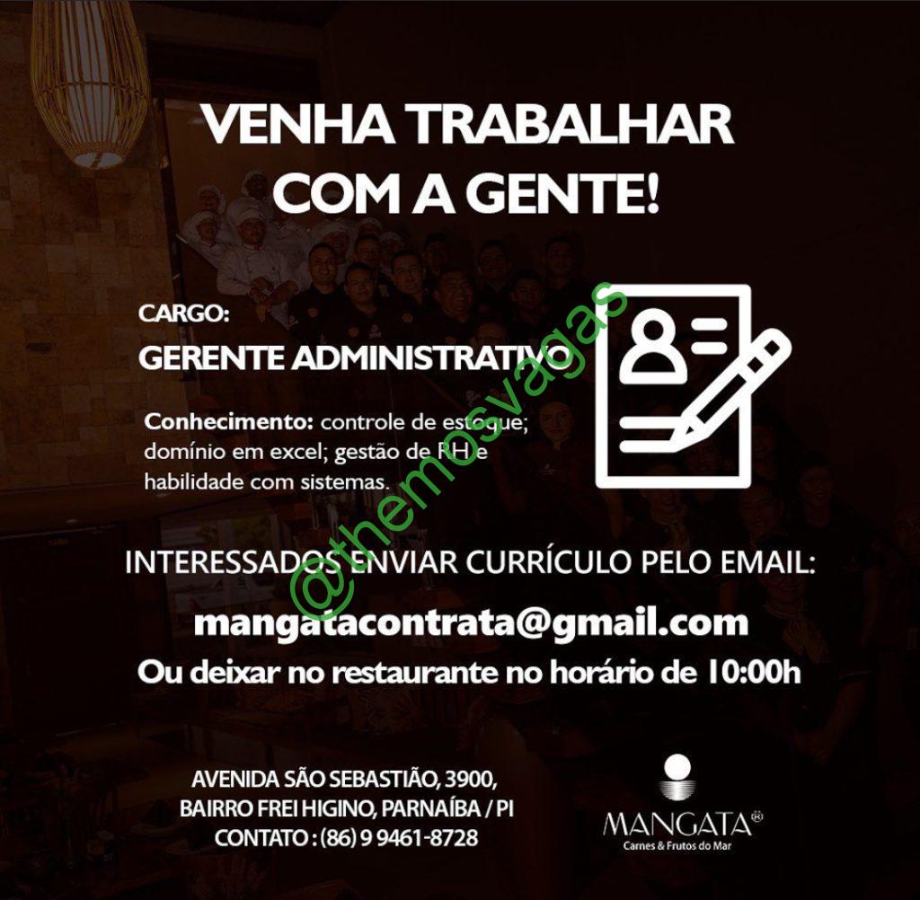 – Interessados(as) e que atendam ao perfil solicitado acima, devem enviar o currículo para o e-mail mangatacontrata@gmail.com contendo no título/assunto “Gerente Administrativo PHB” ou entregar no endereço: Avenida São Sebastião, 3900 – Frei Higino – Parnaíba/PI