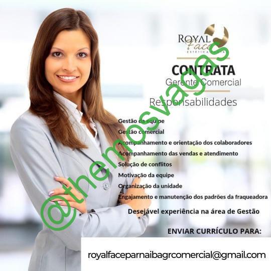 – Interessados(as) e que atendam ao perfil solicitado acima, devem enviar o currículo para o e-mail royalfaceparnaibagrcomercial@gmail.com contendo no título/assunto “Gerente Comercial – PHB”.