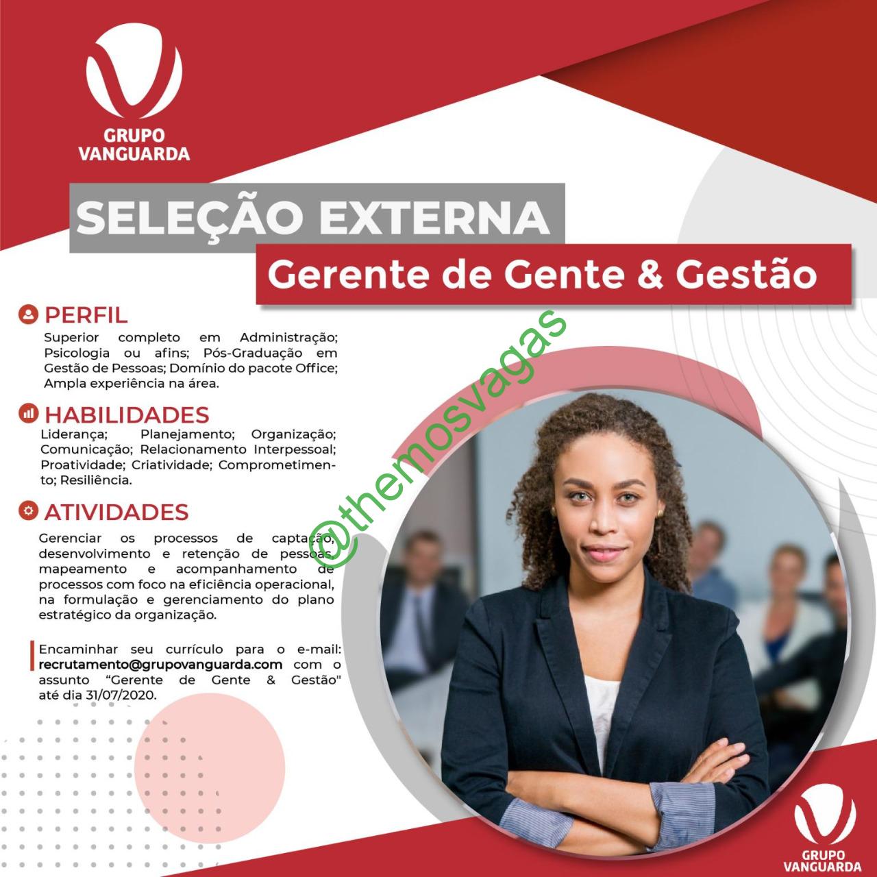 – Interessados(as) e que atendam ao perfil solicitado acima, devem enviar o currículo  até 31/07/2020  para o e-mail recrutamento@grupovanguarda.com contendo no título/assunto “Gerente de Gente e Gestão THE