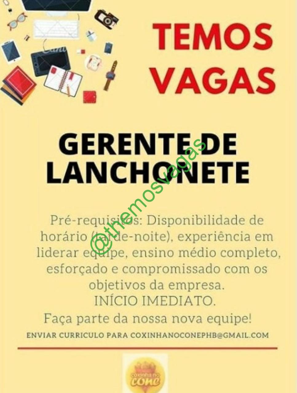 – Interessados(as) e que atendam ao perfil solicitado acima, devem enviar o currículo para o e-mail coxinhanoconephb@gmail.com , contendo no título/assunto “Gerente de Lanchonete“.