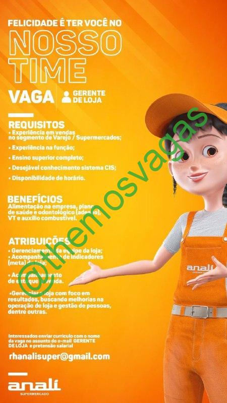 – Interessados(as) e que atendam ao perfil solicitado acima, devem enviar o currículo para o e-mail rhanalisuper@gmail.com, contendo no titulo/assunto “Gerente de Loja -FOR “.