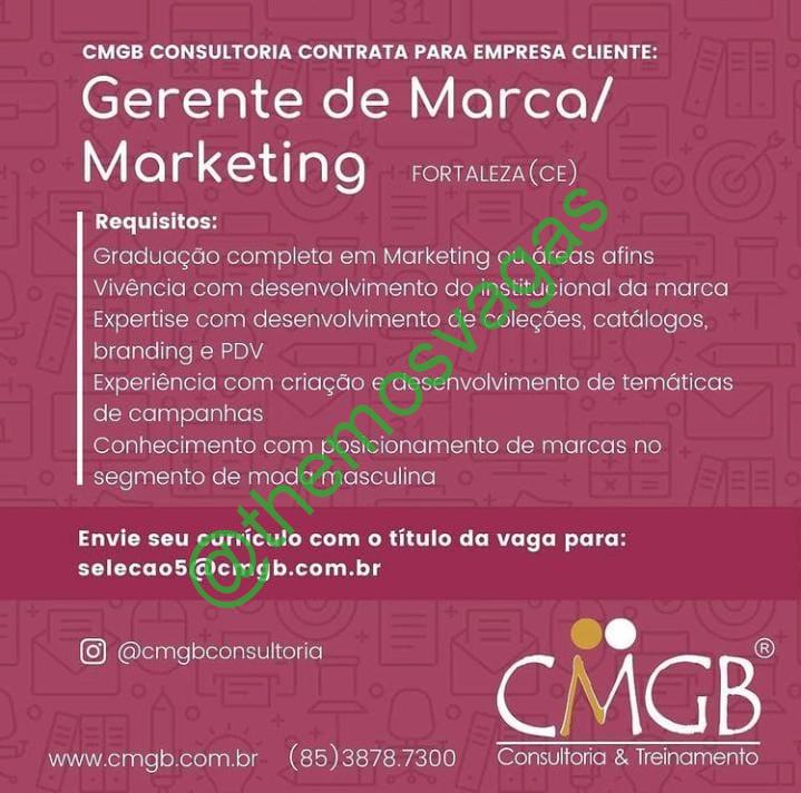 – Interessados(as) e que atendam ao perfil solicitado acima, devem enviar o currículo para o e- mail selecao5@cmgb.com.br, contendo no título/assunto “Gerente de Marca – FOR”.