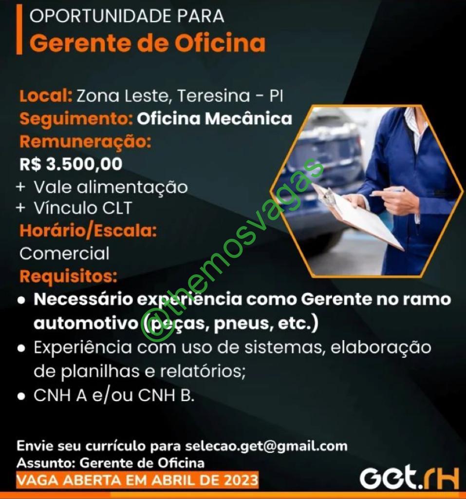 Gerente de Oficina | Teresina – PI | 01 vaga(s)