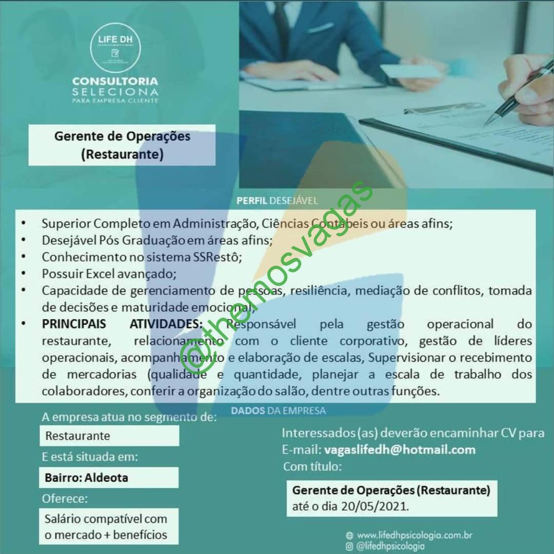 – Interessados(as) e que atendam ao perfil solicitado acima, devem enviar o currículo até 20|05|2021 para o e-mail vagaslifedh@hotmail.com, contendo no título/assunto “Gerente de Operações – FOR“.
