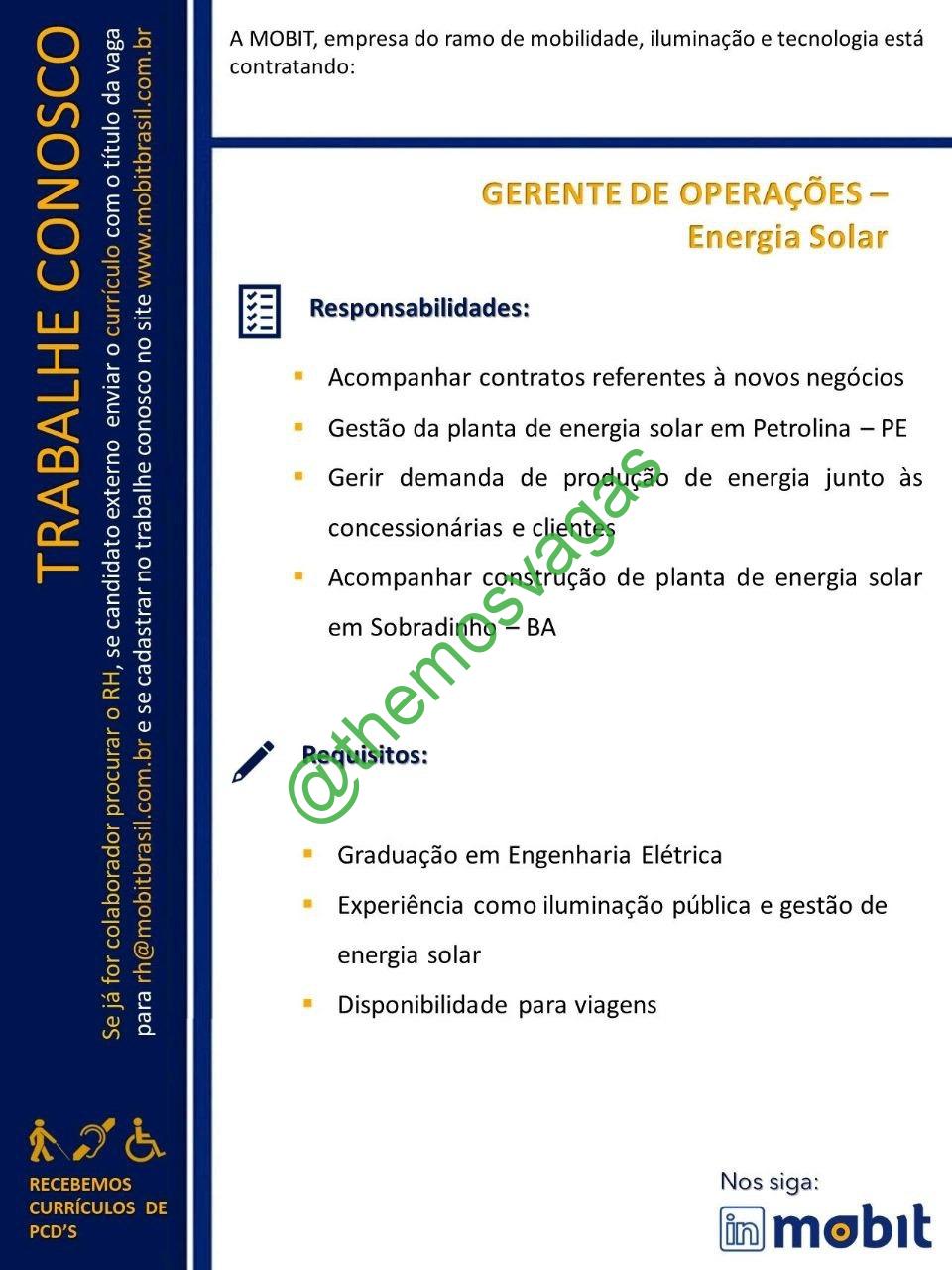 –  Interessados(as) e que atendam ao perfil solicitado acima, devem enviar o currículo para o e-mail rh@mobitbrasil.com.br, contendo no titulo/assunto “Gerente de Operações – FOR”.