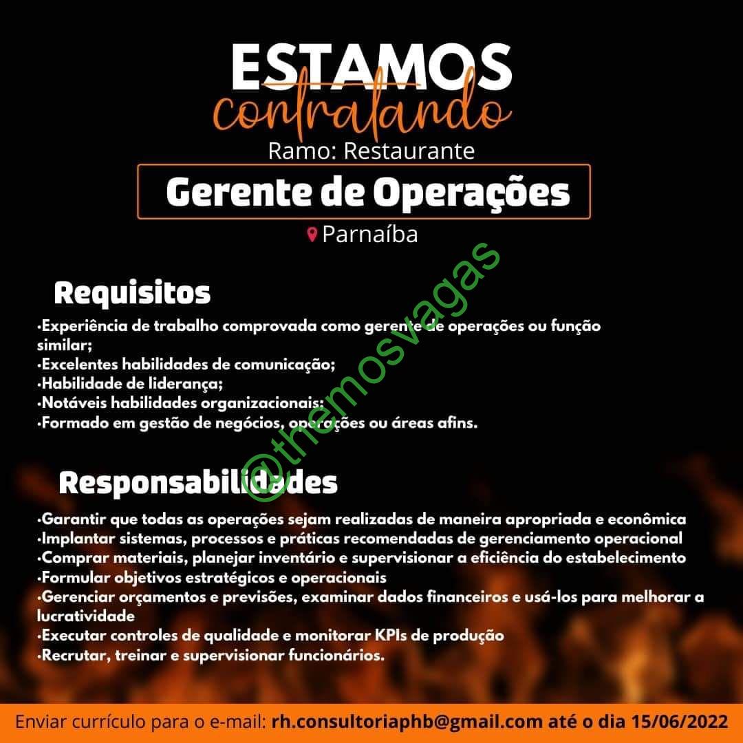 Gerente de Operações | Parnaíba – PI | 01 vaga(s)