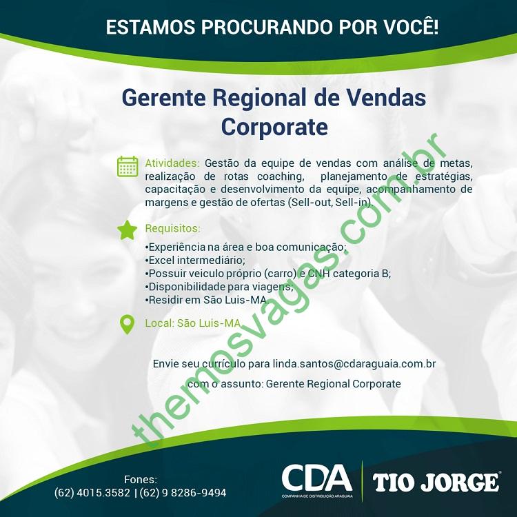 Gerente Regional de Vendas na CDA – Tio Jorge em São Luís – MA