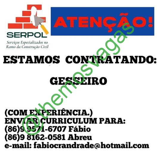 Gesseiro | Teresina – PI | 01 vaga(s)