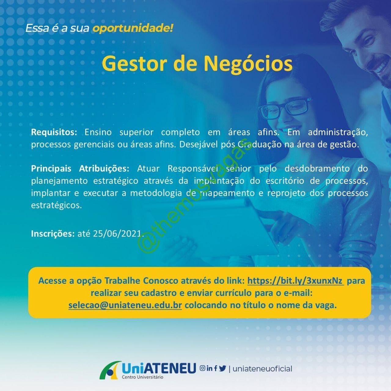 – Interessados(as) e que atendam ao perfil solicitado acima, devem enviar o currículo para o e-mail selecao@uniateneu.edu.br, contendo no titulo/assunto “Gestor de Negócios – FOR”.