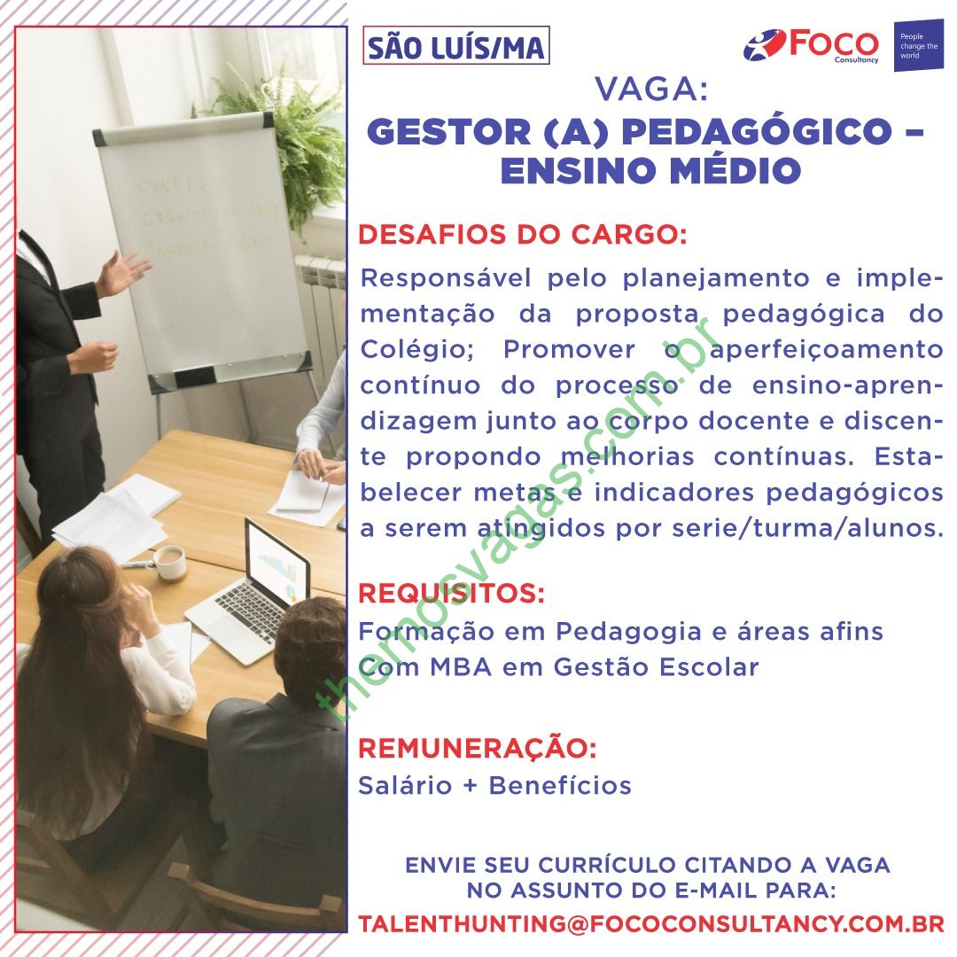 – Interessados(as) e que atendam aos requisitos devem enviar o perfil profissional, colocando no título do e-mail “Gestor Pedagógico”, para: talenthunting@fococonsultancy.com.br