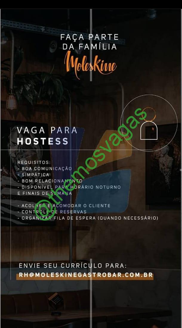 – Interessados(as) e que atendam ao perfil solicitado acima, devem enviar o currículo para o e-mail rh@moleskinegastrobar.com.br, contendo no titulo/assunto “Hostess – FOR”.