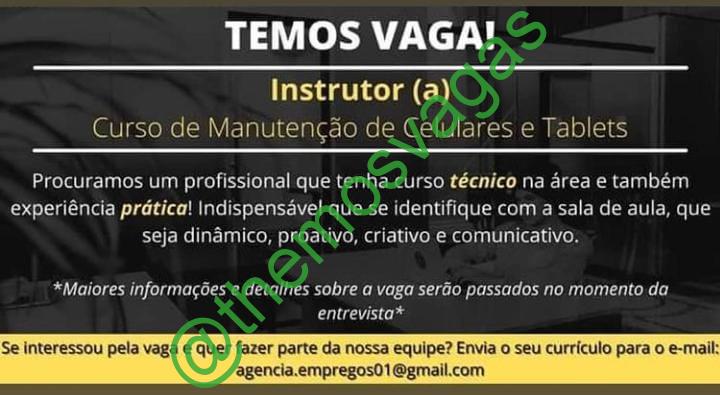 – Interessados(as) e que atendam ao perfil solicitado acima, devem enviar o currículo para o e-mail agencia.empregos01@gmail.com, contendo no título/assunto “Instrutor de Manutenção de Celular e Tablets – FOR