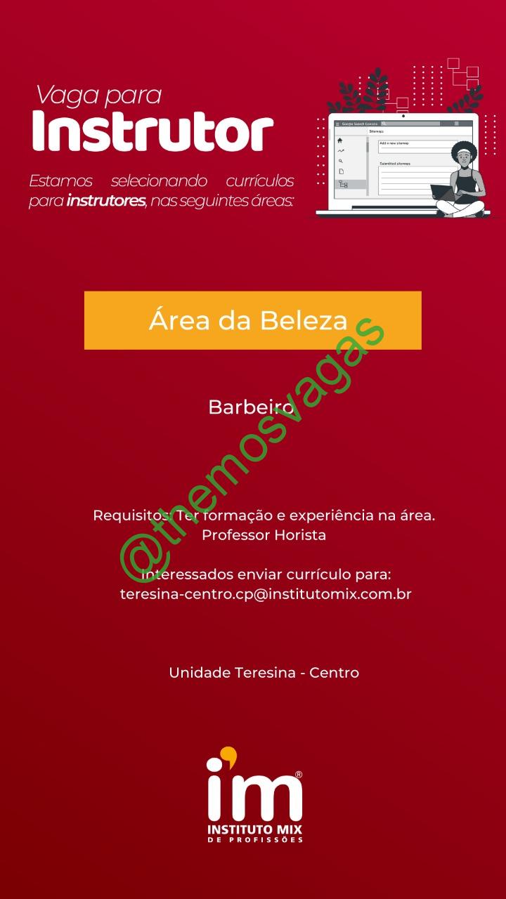 – Interessados(as) e que atendam ao perfil solicitado acima, devem enviar o currículo para o e-mail teresina-centro.cp@institutomix.com.br, contendo no título/assunto “Instrutor de Barbeiro – THE“.