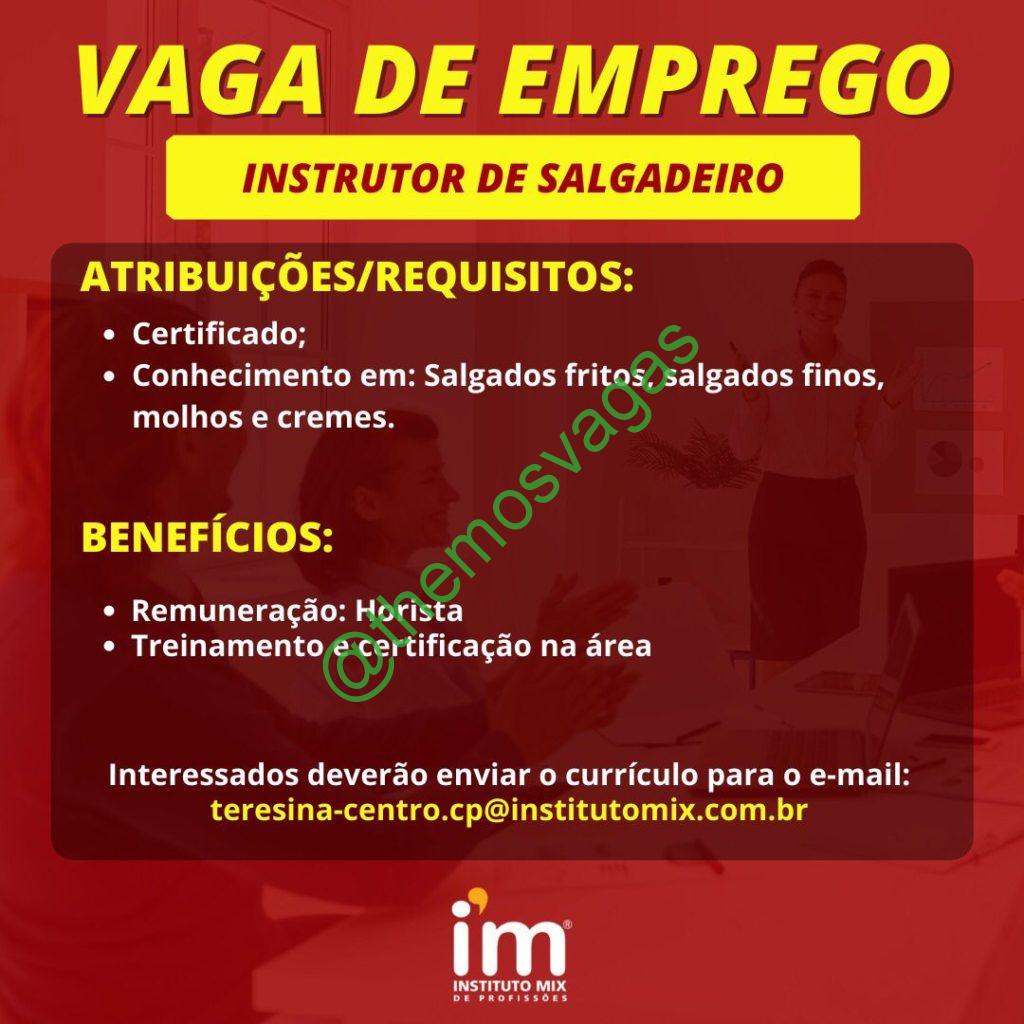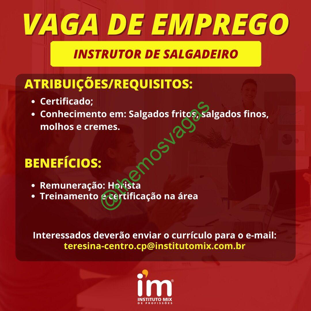 – Interessados(as) e que atendam ao perfil solicitado acima, devem enviar o currículo para o e-mail teresina-centro.cp@institutomix.com.br contendo no título/assunto “Instrutor de Salgadeiro THE