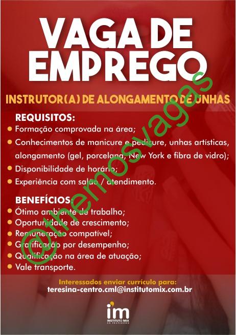 – Interessados(as) e que atendam ao perfil solicitado acima, devem enviar o currículo para o e-mail teresina-centro.cml@institutomix.com.br contendo no título/assunto “Instrutor(a) de Along Unhas THE