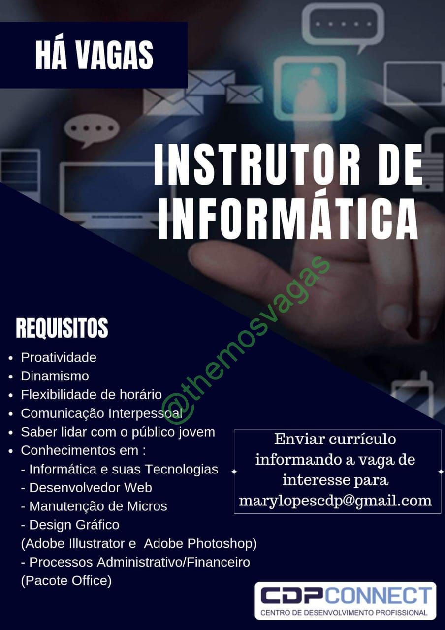 – Interessados(as) e que atendam ao perfil solicitado acima, devem enviar o currículo para o e-mail marylopescdp@gmail.com , colocando no título “Instrutor(a) de Informática”.