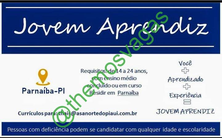– Interessados(as) e que atendam ao perfil solicitado acima, devem enviar o currículo para o e-mail thais@asanortedopiaui.com.br contendo no título/assunto “Jovem Aprendiz PHB“.