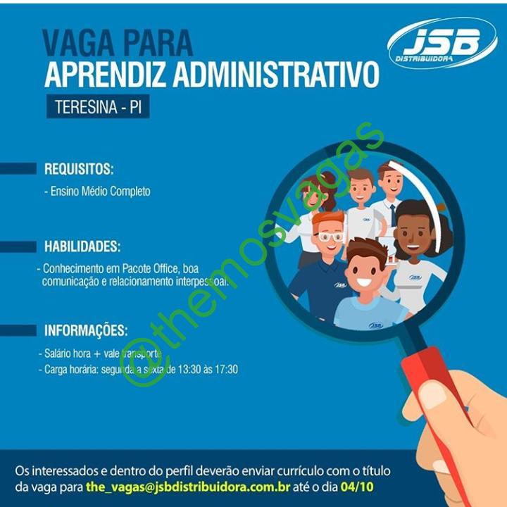 – Interessados(as) e que atendam ao perfil solicitado acima, devem enviar o currículo até 04/10/2019 para o e-mail the_vagas@jsbdistribuidora.com.br contendo no título/assunto “Jovem Aprendiz“.