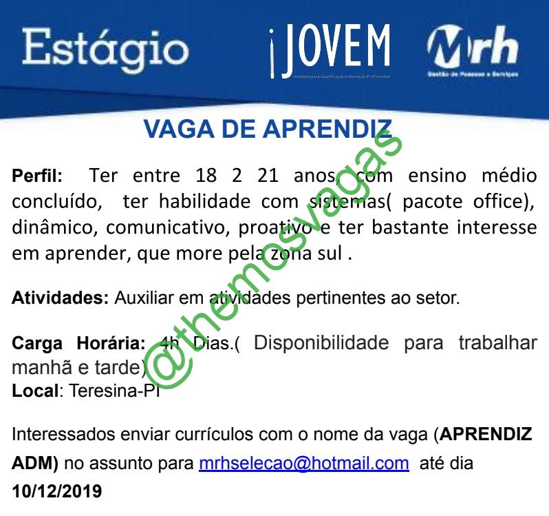 Jovem Aprendiz / 01 vaga(s) / Teresina – PI