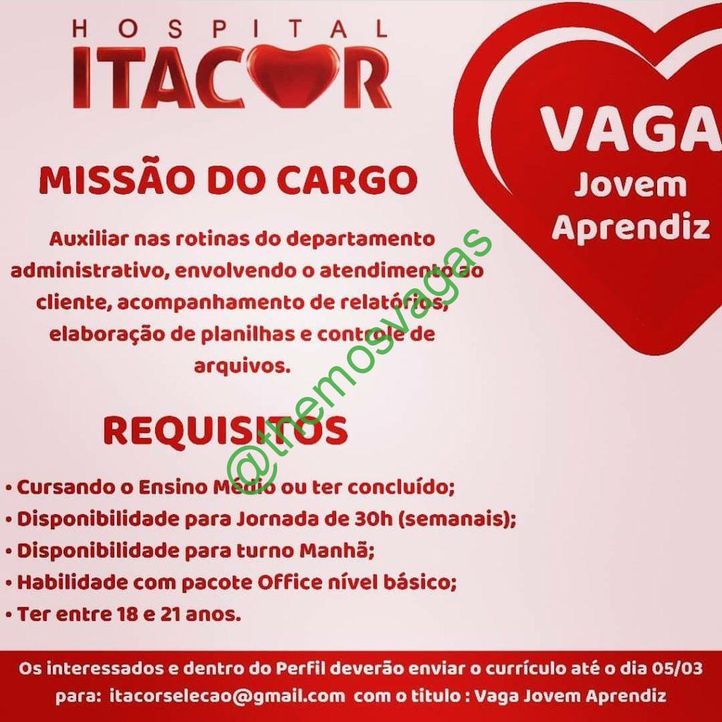 – Interessados(as) e que atendam ao perfil solicitado acima, devem enviar o currículo até 05/03/2020 para o e-mail itacorselecao@gmail.com contendo no título/assunto “Vaga Jovem Aprendiz”