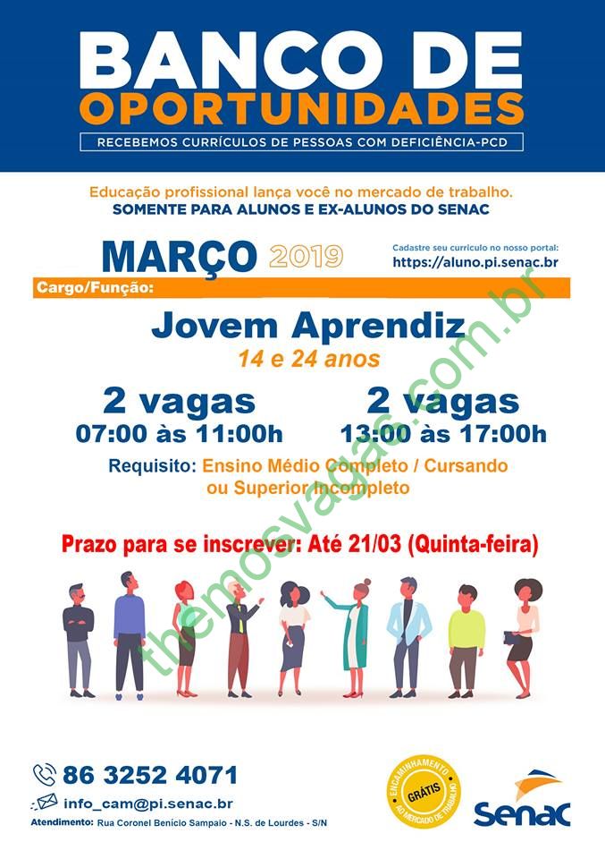 Interessados e que atendam aos perfis solicitados devem realizar o cadastro do currículo no site de cadastro do SENAC  até o dia 21/03/2019.