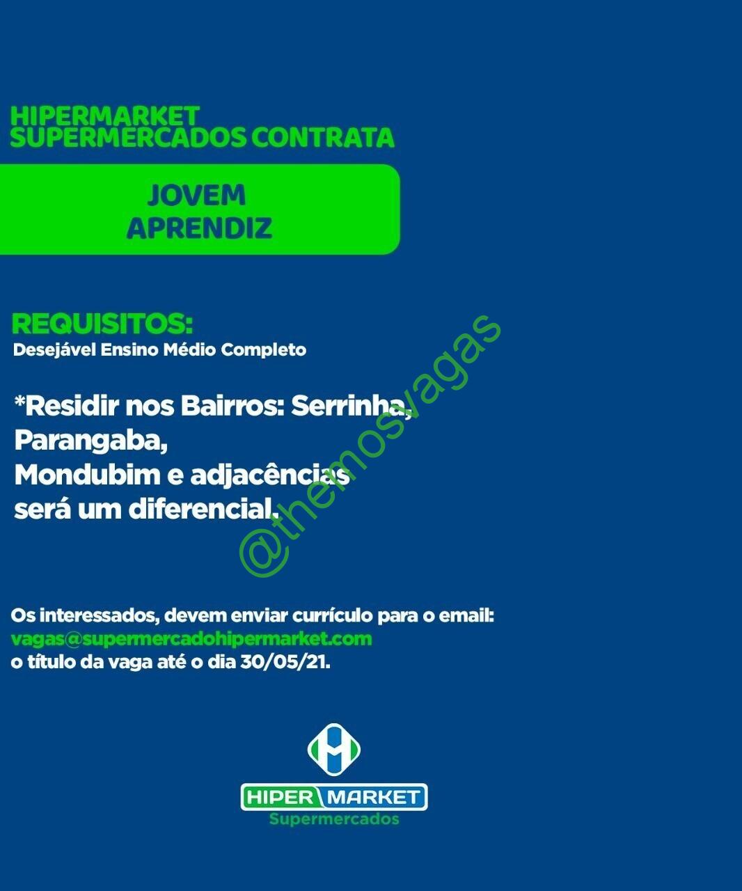 – Interessados(as) e que atendam ao perfil solicitado acima, devem enviar o currículo até 30|05|2021 para o e-mail vagas@supermercadohipermarketing.com, contendo no titulo/assunto “Jovem Aprendiz – FOR