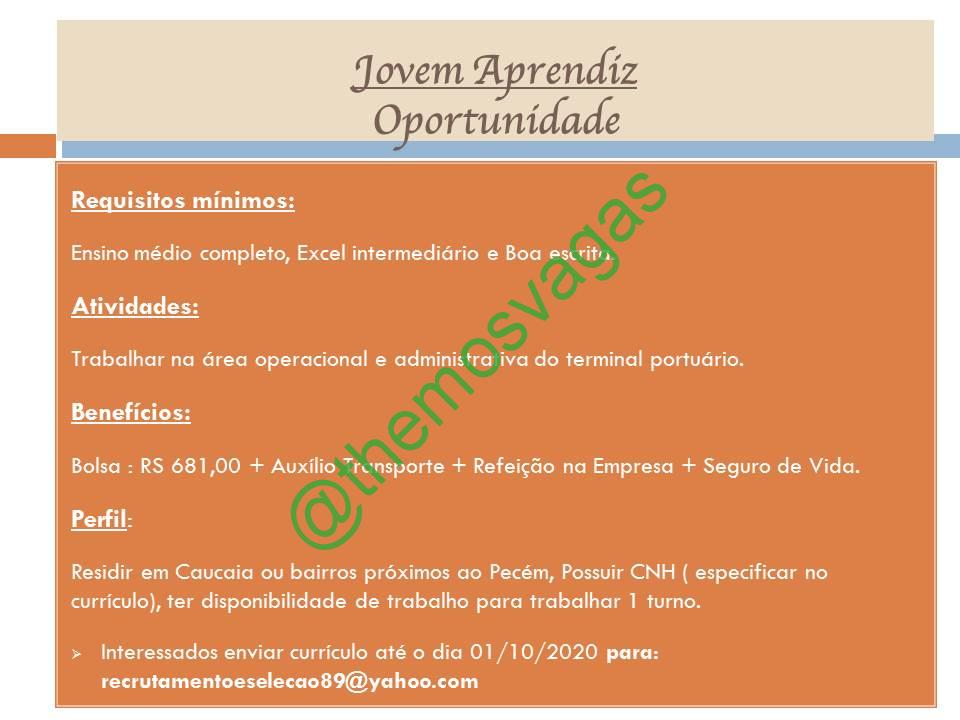 – Interessados(as) e que atendam ao perfil solicitado acima, devem enviar o currículo até o dia 01/10/2020 para o e-mail recrutamentoeselecao89@yahoo.com , colocando no título “Jovem Aprendiz – FOR”.