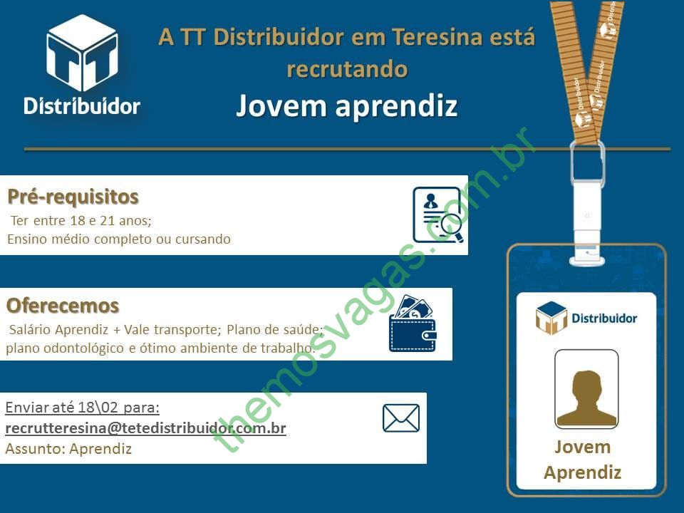 Interessados(as) e que atendam aos requisitos exigidos na imagem acima devem enviar o perfil profissional até 18/02/2019, contendo no título/assunto do e-mail “Aprendiz”, para recrutteresina@tetedistribuidor.com.br .