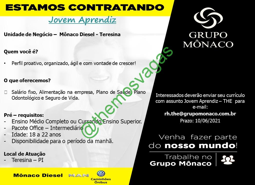 – Interessados(as) e que atendam ao perfil solicitado acima, devem enviar o currículo até 10/06/2021  para o e-mail rh.the@grupomonaco.com.br contendo no título/assunto “Jovem Aprendiz THE