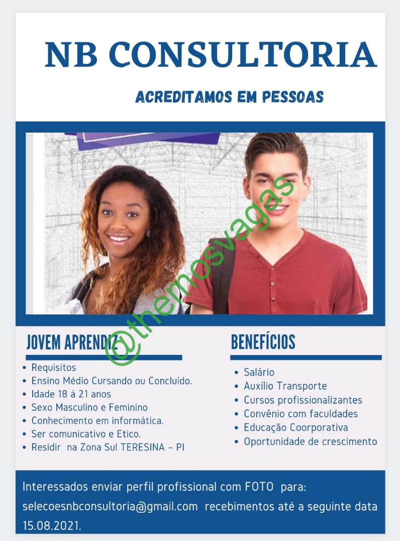 – Interessados(as) e que atendam ao perfil solicitado acima, devem enviar currículo com foto até 15/08/2021 para o e-mail selecoesnbconsultoria@gmail.com, contendo no título/assunto “Jovem Aprendiz – THE“.