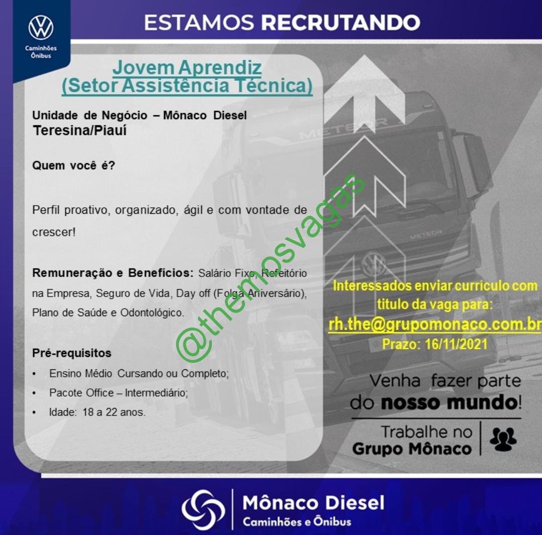 – Interessados(as) e que atendam ao perfil solicitado acima, devem enviar o currículo até 16/11/2021 para o e-mail rh.the@grupomonaco.com.br, contendo no título/assunto “Jovem Aprendiz – THE“.