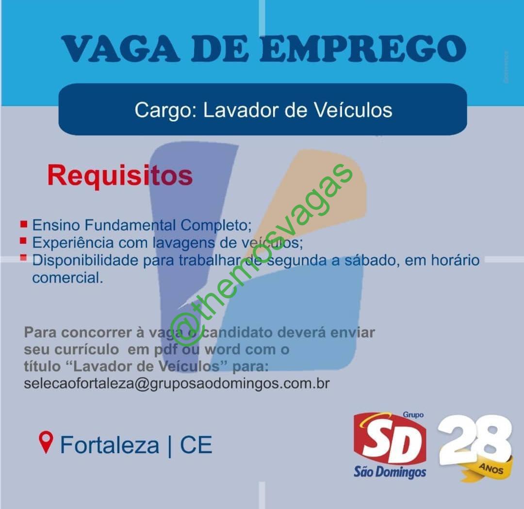 – Interessados(as) e que atendam ao perfil solicitado acima, devem enviar o currículo para o e-mail selecaofortaleza@gruposaodomingos.com.br, contendo no título/assunto “Lavador de Veículos – FOR“.