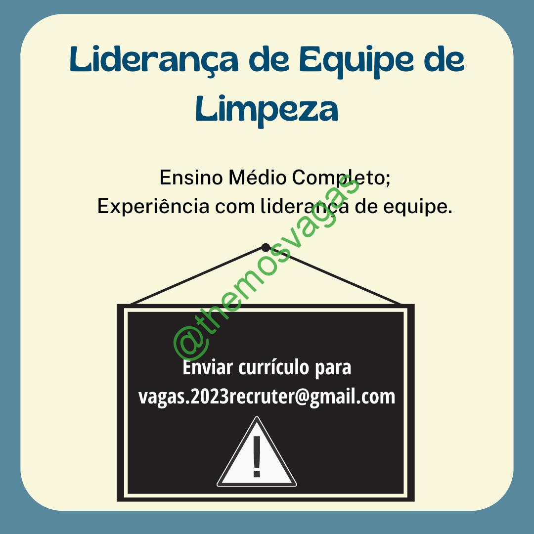 – Interessados(as) e que atendam ao perfil solicitado acima, devem enviar o currículo para o e-mail vagas.2023recruter@gmail.com contendo no título/assunto “Líder de Equipe de Limpeza – THE“.