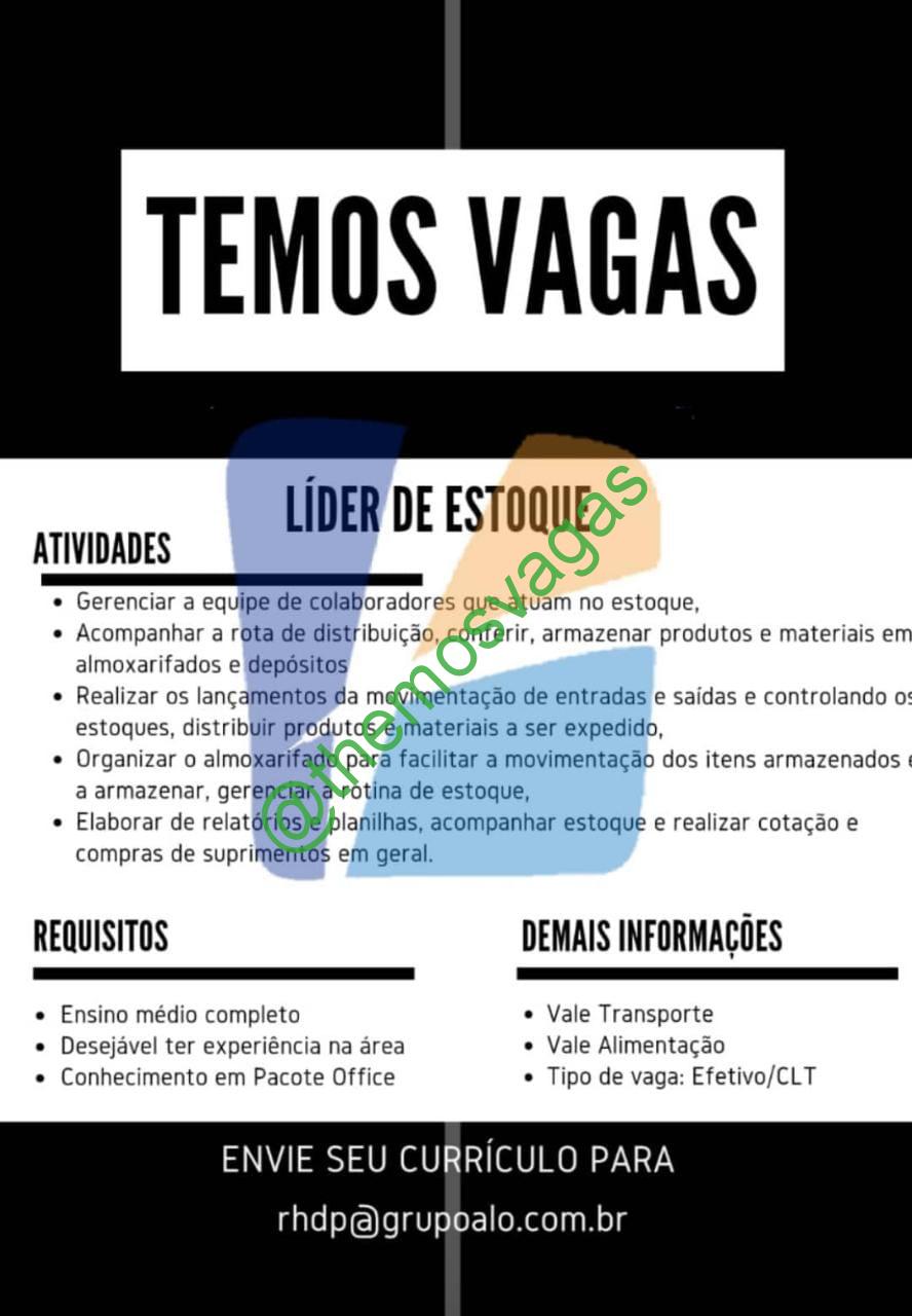– Interessados(as) e que atendam ao perfil solicitado acima, devem enviar o currículo para o e-mail rhdp@grupoalo.com.br, contendo no título/assunto “Líder de Estoque – FOR