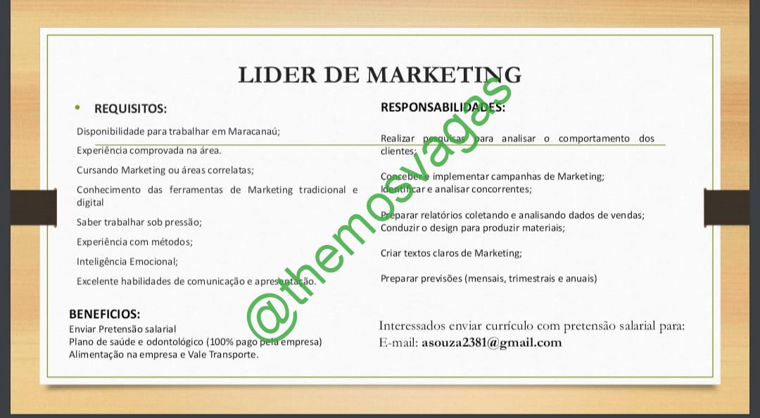 – Interessados(as) e que atendam ao perfil solicitado acima, devem enviar o currículo para o e-mail aasouza2381@gmail.com, com o titulo/assunto “Líder de Marketing – FOR