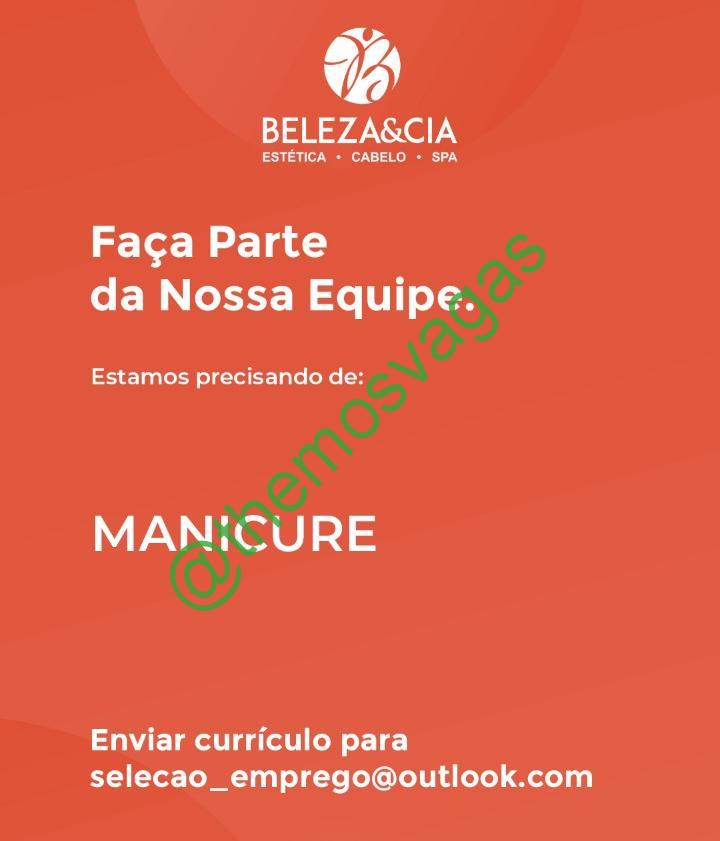 – Interessados(as) e que atendam ao perfil solicitado acima, devem enviar o currículo para o e-mail selecao_emprego@outlook.com contendo no título/assunto “Manicure THE“.