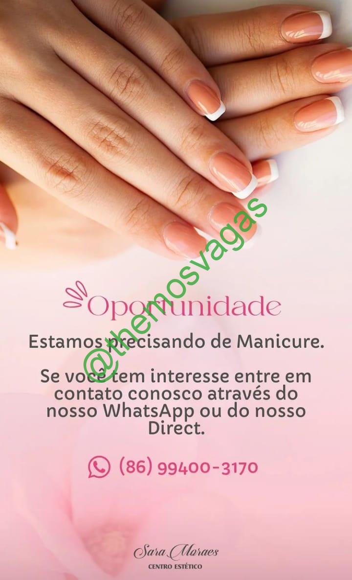 – Interessados(as) e que atendam ao perfil solicitado acima, devem enviar o currículo através do whatsapp 86 9400-3170 informando que pretende concorrer para a vaga de  “Manicure”.