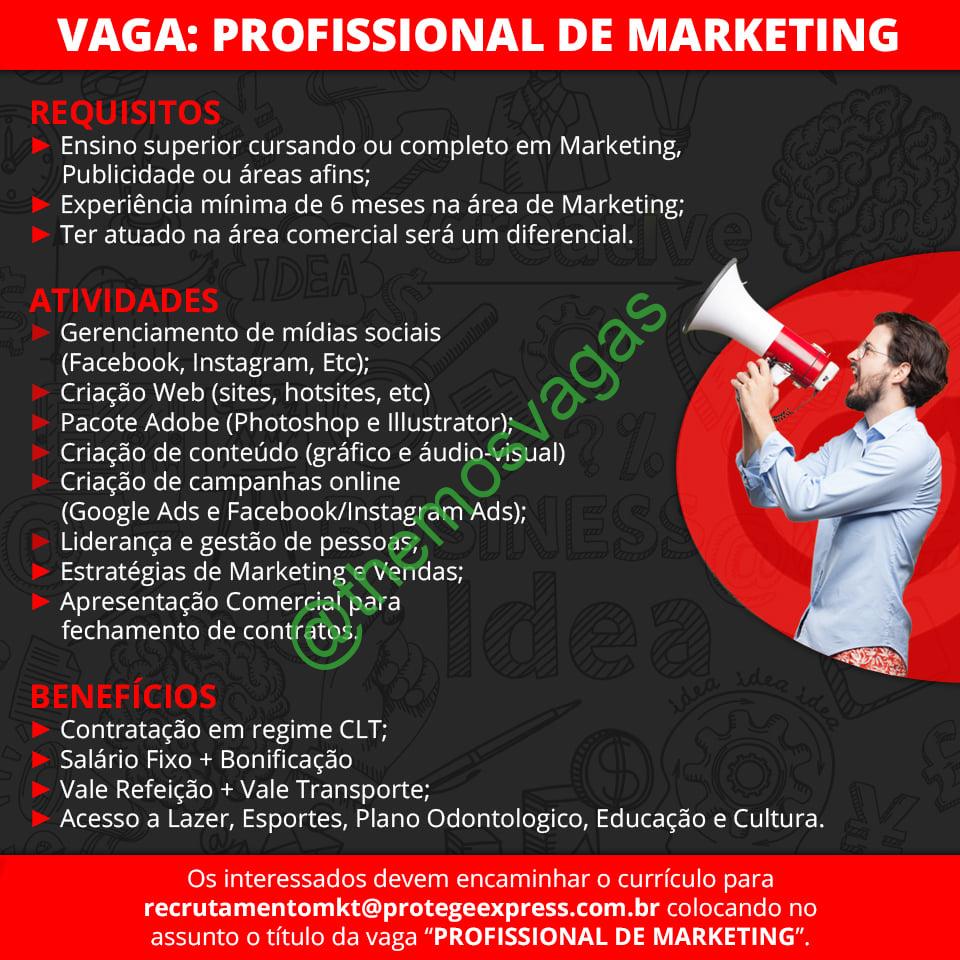 – Interessados(as) e que atendam ao perfil solicitado acima, devem enviar o currículo para o e-mail recrutamentomkt@protegeexpress.com.br, contendo no título/assunto “Profissional de Marketing – FOR