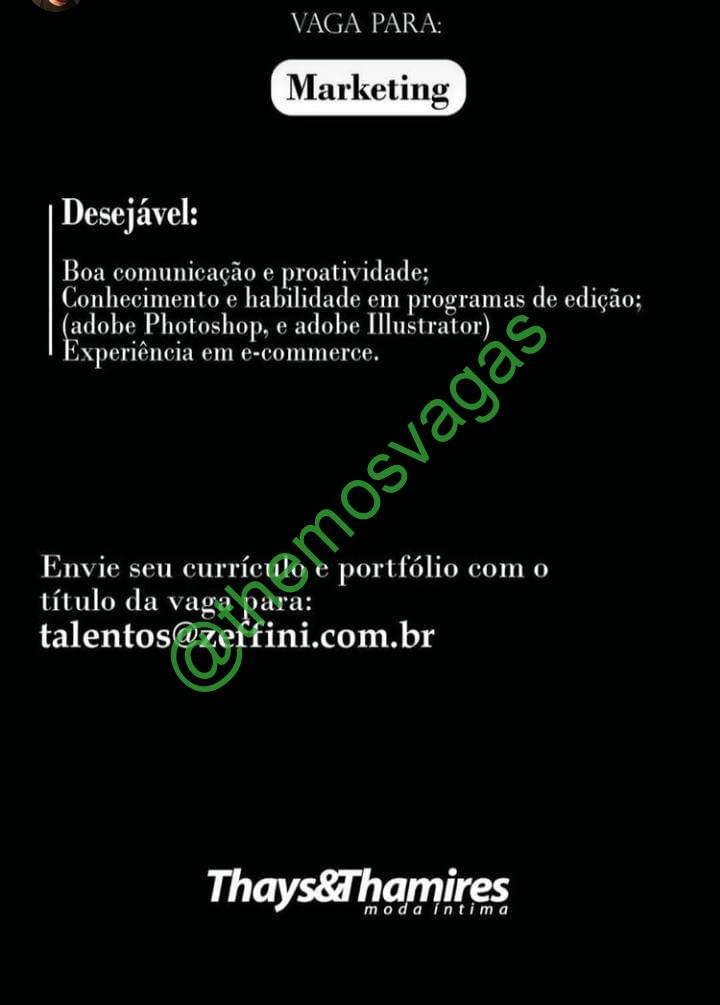 ---------- ATENÇÃO: Essa vaga é de responsabilidade do anunciante. Fique atento para possíveis golpes. Se perceber algo suspeito, nos comunique através do e-mail floromauel@gmail.com colocando no título "Themos Vagas - Denúncia" juntamente com o link da publicação e o motivo da denúncia na descrição da mensagem para que possamos analisar e parar de divulgar o anúncio. ----------