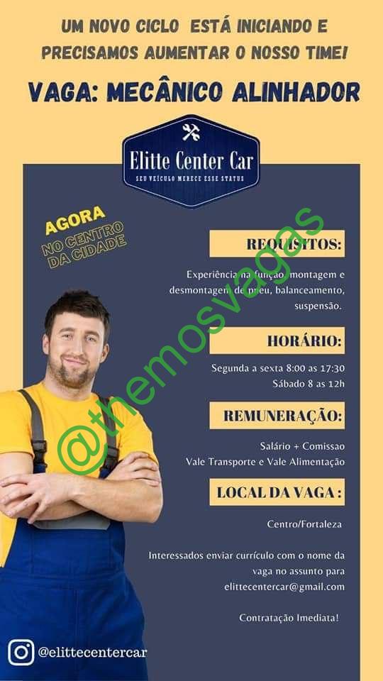– Interessados(as) e que atendam ao perfil solicitado acima, devem enviar o currículo para o e-mail elittecentercar@gmail.com, contendo no titulo/assunto “Mecânico Alinhador – FOR”