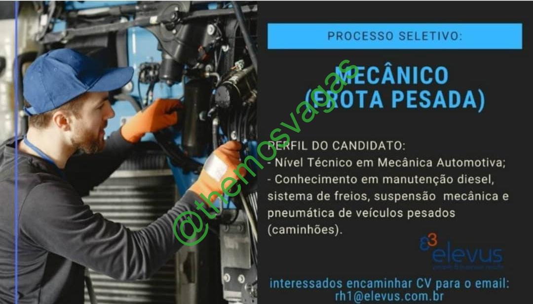 – Interessados(as) e que atendam ao perfil solicitado acima, devem enviar o currículo para o e-mail rh1@elevus.com.br, contendo no titulo/assunto “Mecânico (Frota Pesada) – FOR