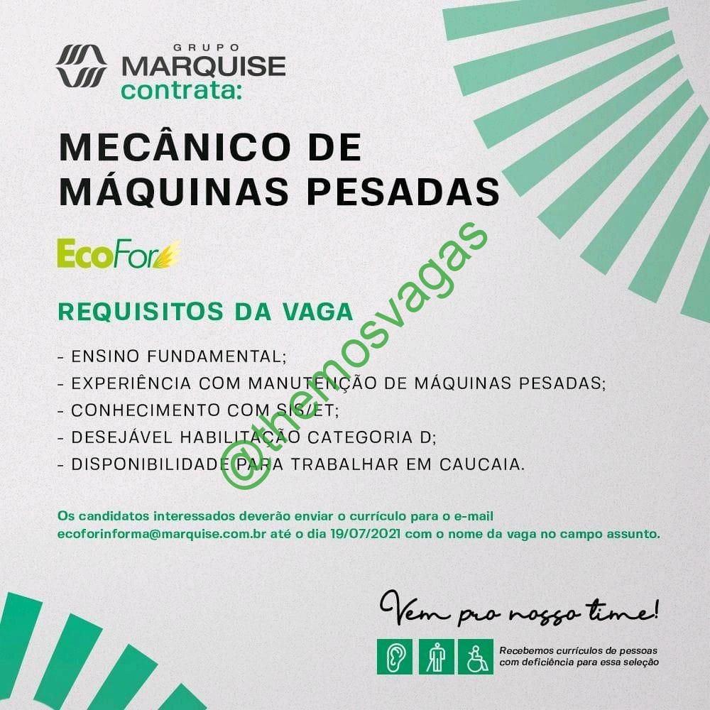 – Interessados(as) e que atendam ao perfil solicitado acima, devem enviar o currículo até 19|07|2021 para o e-mail ecoforinforma@marquise.com.br, contendo no titulo/assunto “Mecânico de Máquinas Pesadas – FOR”