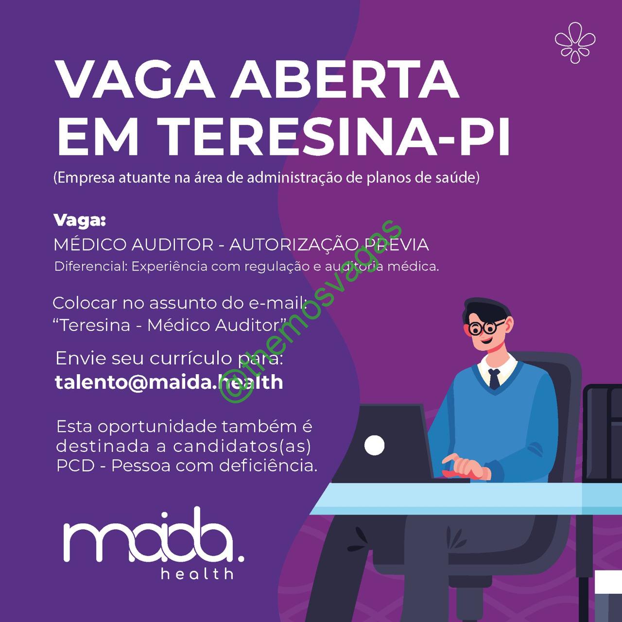 – Interessados(as) e que atendam ao perfil solicitado acima, devem enviar o currículo  para o e-mail talento@maida.health contendo no título/assunto “Teresina – Médico Auditor