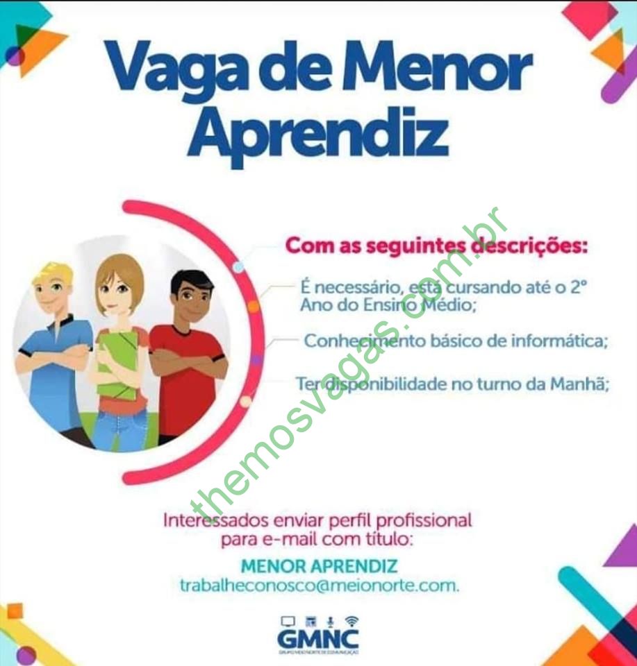 Interessados(as) e que atendam aos requisitos exigidos na imagem acima devem enviar o perfil profissional, contendo no título/assunto do e-mail “Menor Aprendiz”, para trabalheconosco@meionorte.com .