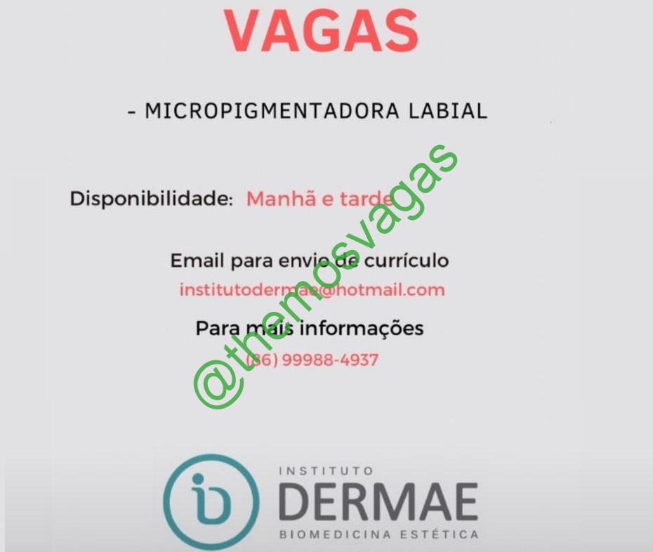– Interessados(as) e que atendam ao perfil solicitado acima, devem enviar o currículo para o e-mail institutodermae@hotmail.com contendo no título/assunto “Micropigmentadora Labial THE