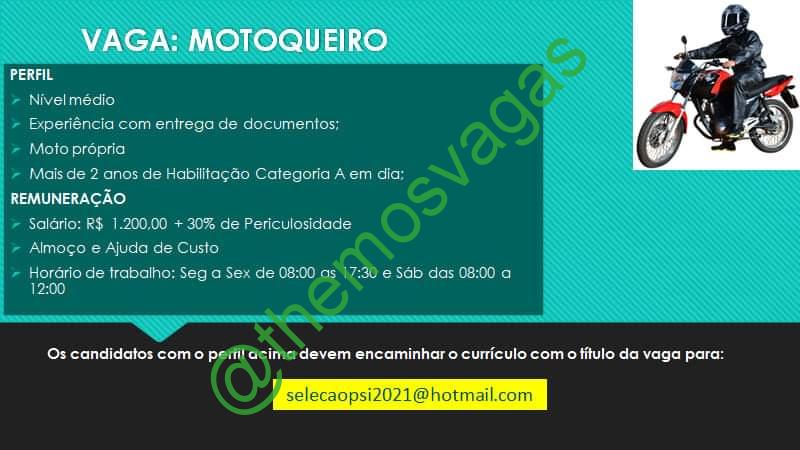 –  Interessados(as) e que atendam ao perfil solicitado acima, devem enviar o currículo para o e-mail selecaopsi2021@hotmail.com, contendo no titulo/assunto “Motoqueiro – FOR”.