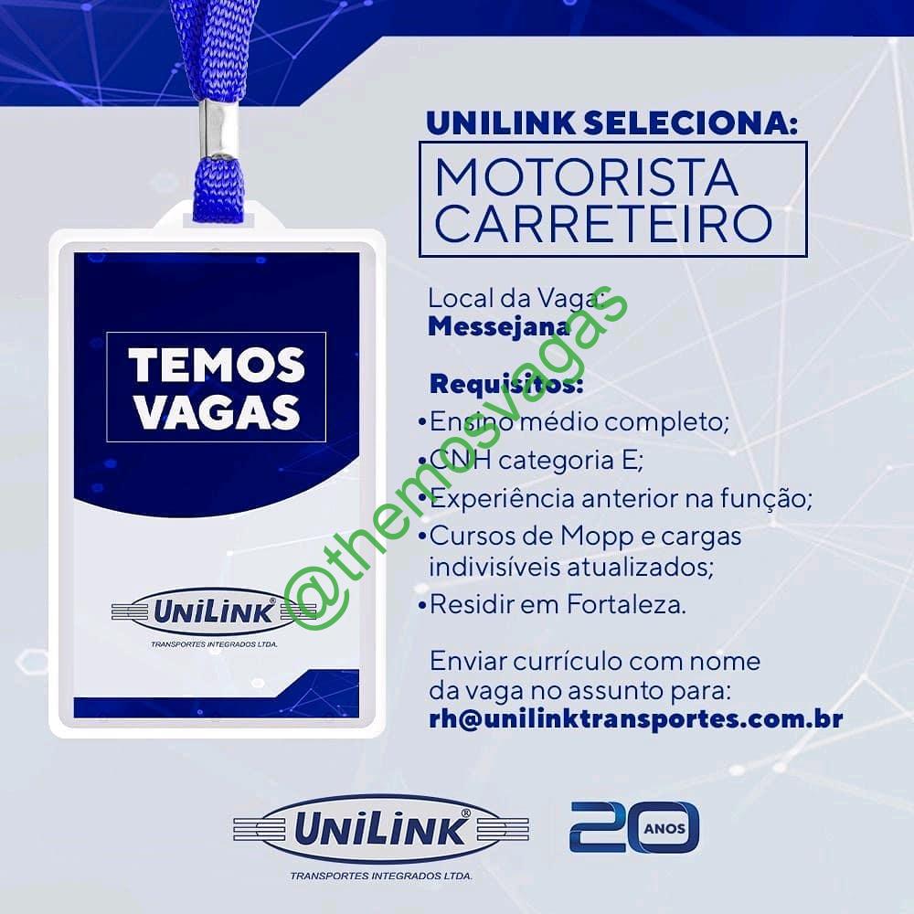 – Interessados(as) e que atendam ao perfil solicitado acima, devem enviar o currículo para o e-mail rh@unilinktransportes.com.br contendo no título/assunto “Motorista Carreteiro – FOR“.