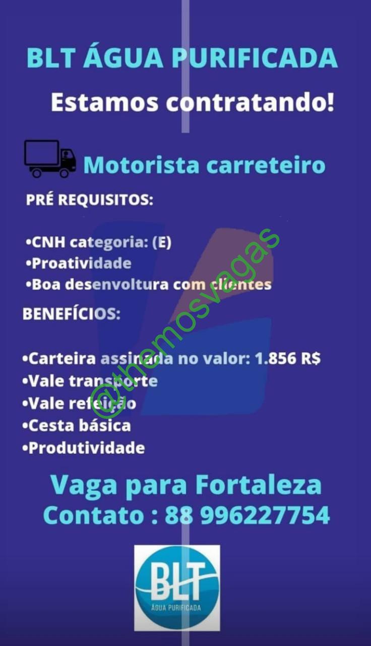 Motorista Carreteiro | Fortaleza – CE | 01 vaga(s)